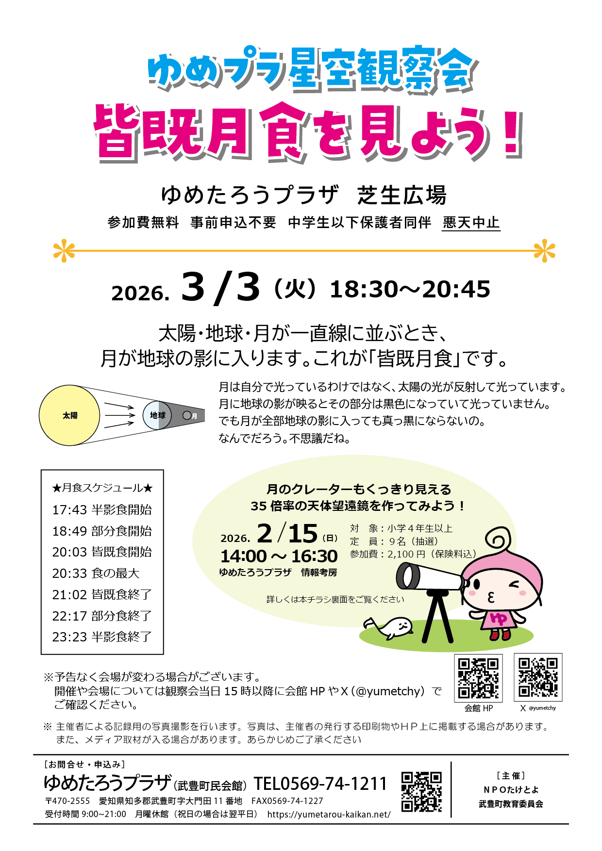 ゆめプラ星空観察会「皆既月食を見よう!」