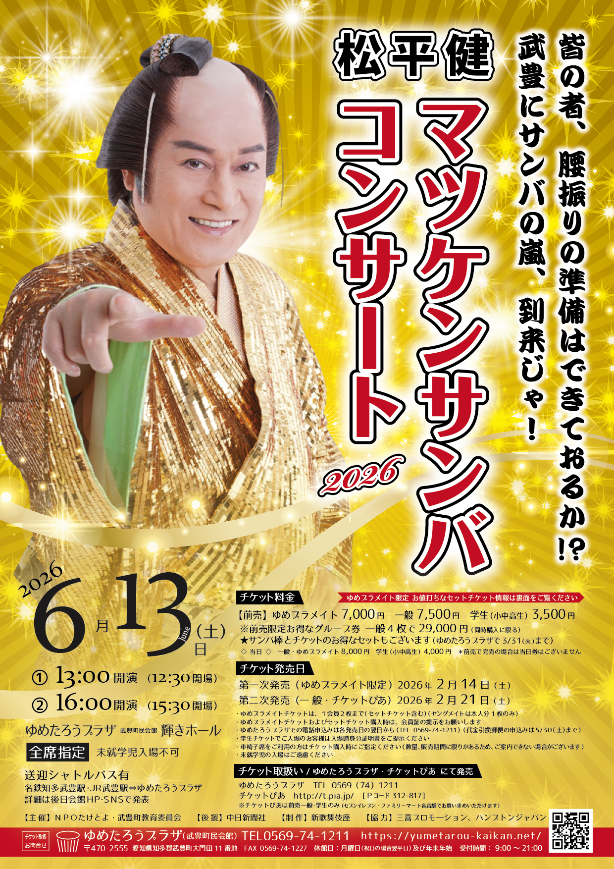 令和7年度 武豊町子ども舞台芸術体験事業 ゆめっぴ企画 第20弾「新沢としひこ・山野さと子 ファン!ふぁん!ファミリーコンサート」