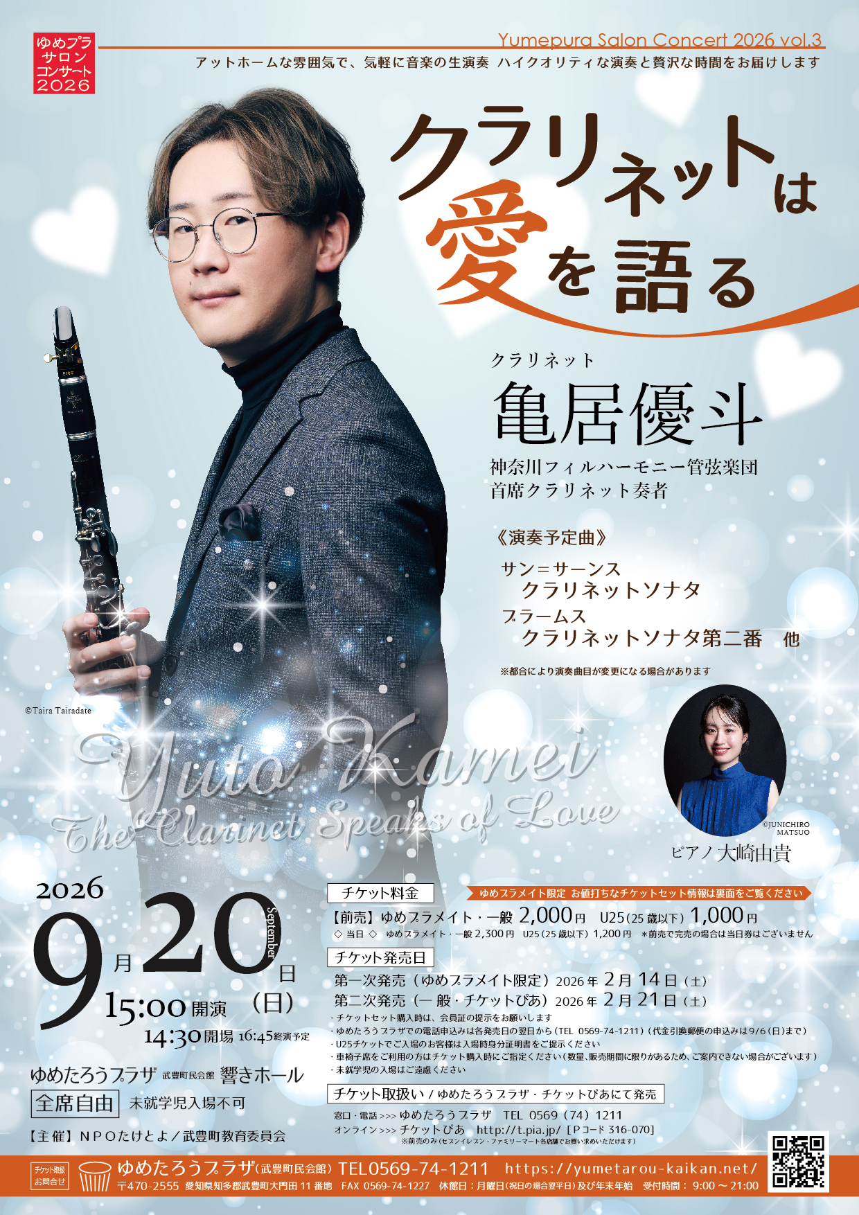 ゆめプラ サロンコンサート2026 亀居優斗「クラリネットは愛を語る」