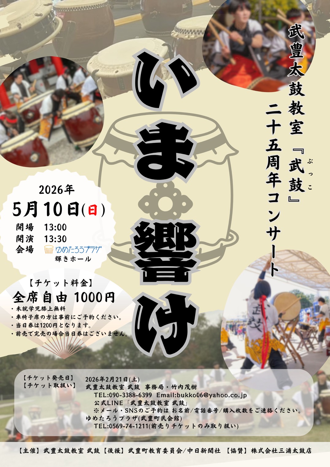 主催:武豊太鼓教室 武鼓/後援:武豊町教育委員会・中日新聞社/協賛:株式会社三浦太鼓店